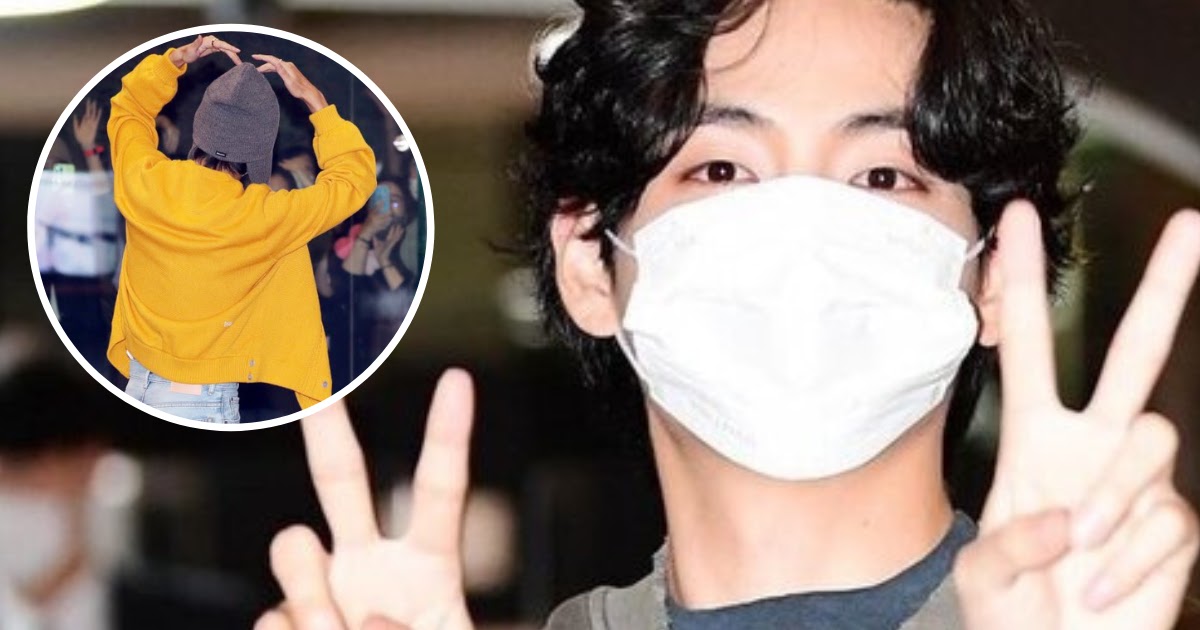V s’est assuré de retirer momentanément son masque pour pouvoir sourire aux ARMY qui l’attendaient patiemment.