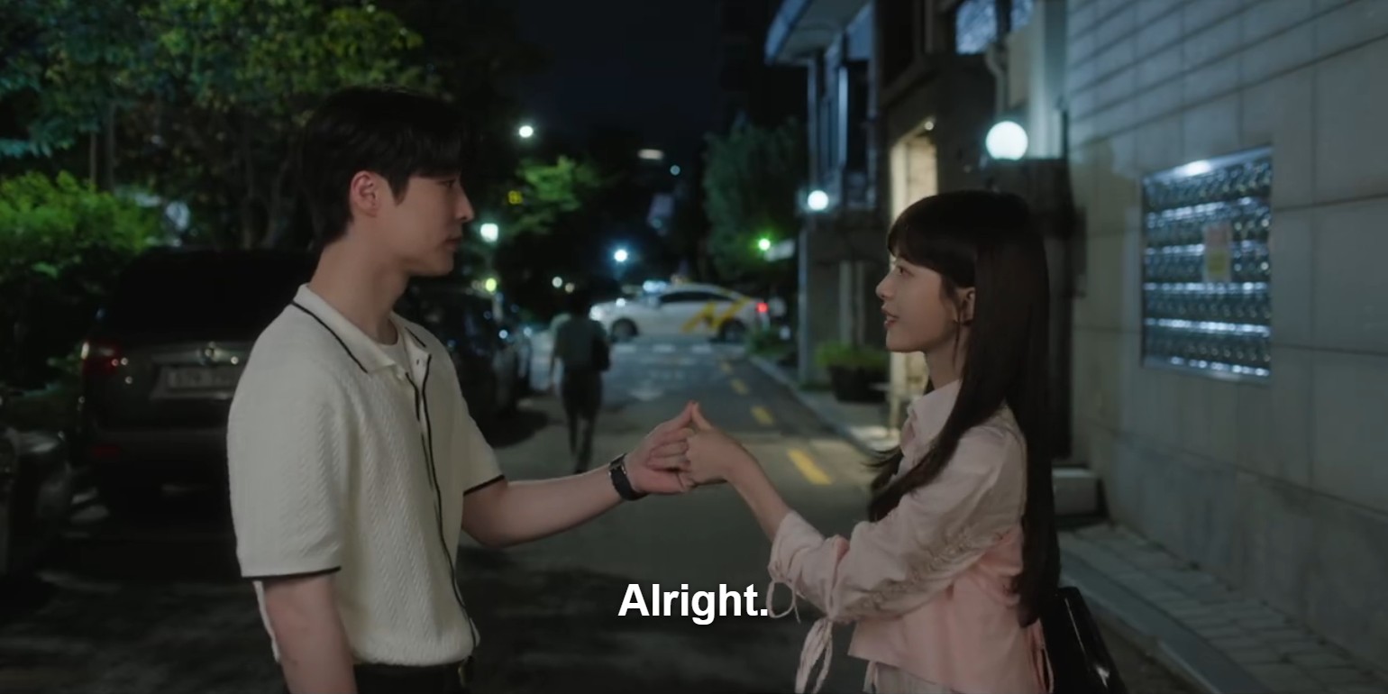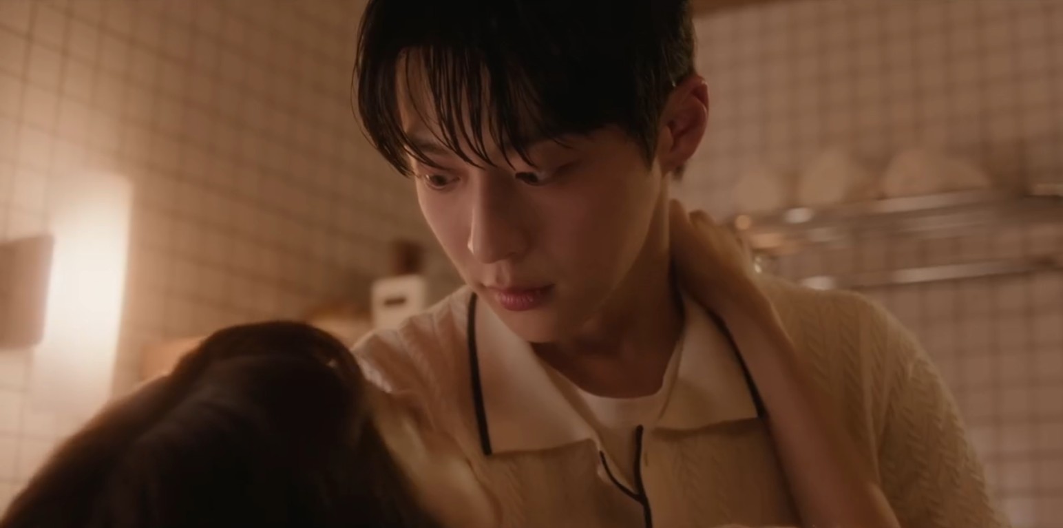 The camping trip puts them on good terms again, but it doesn’t last. The miscommunication trope strikes: Tae Hyung overhears Hyun Jin talking about how awkward things have been living together, and it sounds like she’s almost relieved he’ll be moving out soon. He only catches the worst part and leaves before she gets to all the good things she actually says about him.