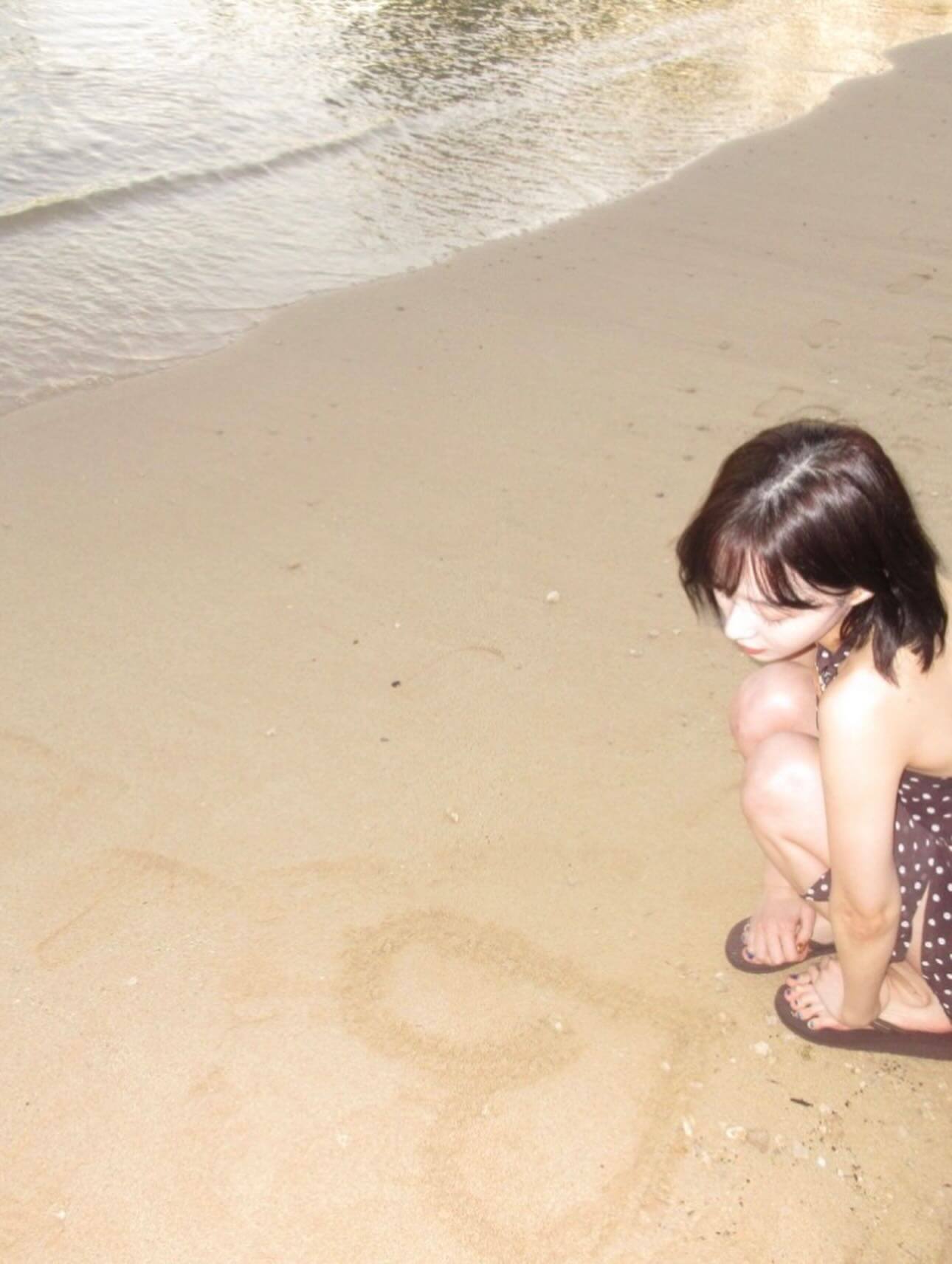 Standing on the postcard-perfect beach, Winter shows off her doll-like visuals as she enjoys the refreshing ocean breeze and the serenity of nature. One moment, in particular, caught fans’ eyes: Winter drawing a heart on the sand and gazing at it quietly, a scene that many interpreted as symbolic and romantic.