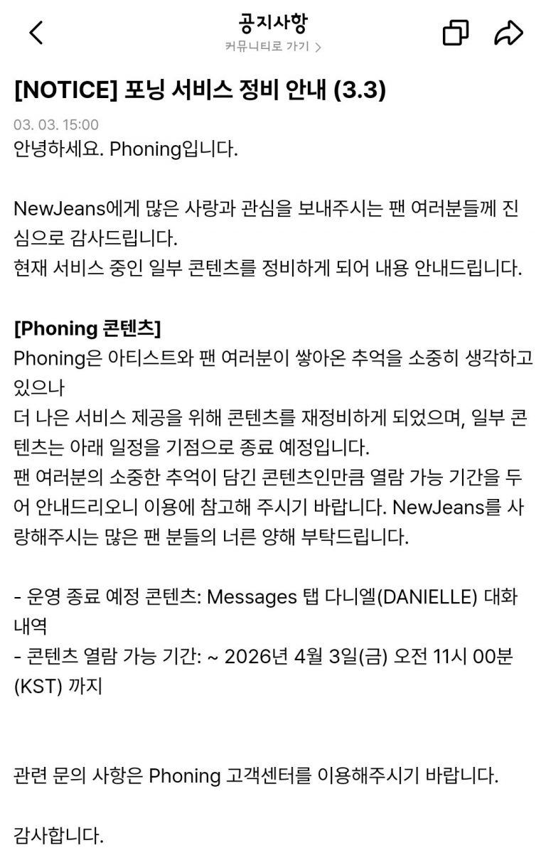 Concerns have also been raised about potential consumer rights violations, as Phoning operates as a paid subscription service that allows fans to exchange private messages with members. Some subscribers have criticized the lack of mention regarding refunds or compensation, calling the unilateral deletion of paid content misleading and unfair.