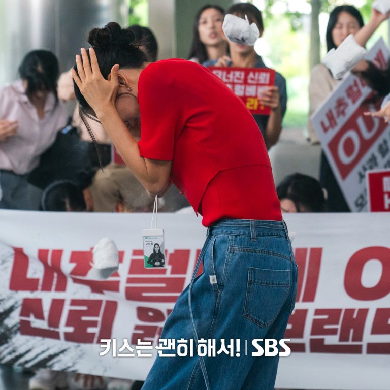 The newly released stills depict Da Rim facing a crisis. In the photos, she is surrounded by a crowd in the lobby of the baby products company Natural Bebe. The people are holding banners and placards with shocking messages like “Natural Bebe OUT” and “Boycott.” Anger is evident on their faces, and some even appear to be throwing objects at Da Rim. In one photo, Jang Jin Hee (Jung Soo Young), a fellow member of the Mother TF team, is seen trying to protect Go Da Rim, leaving viewers curious about what could have happened.
