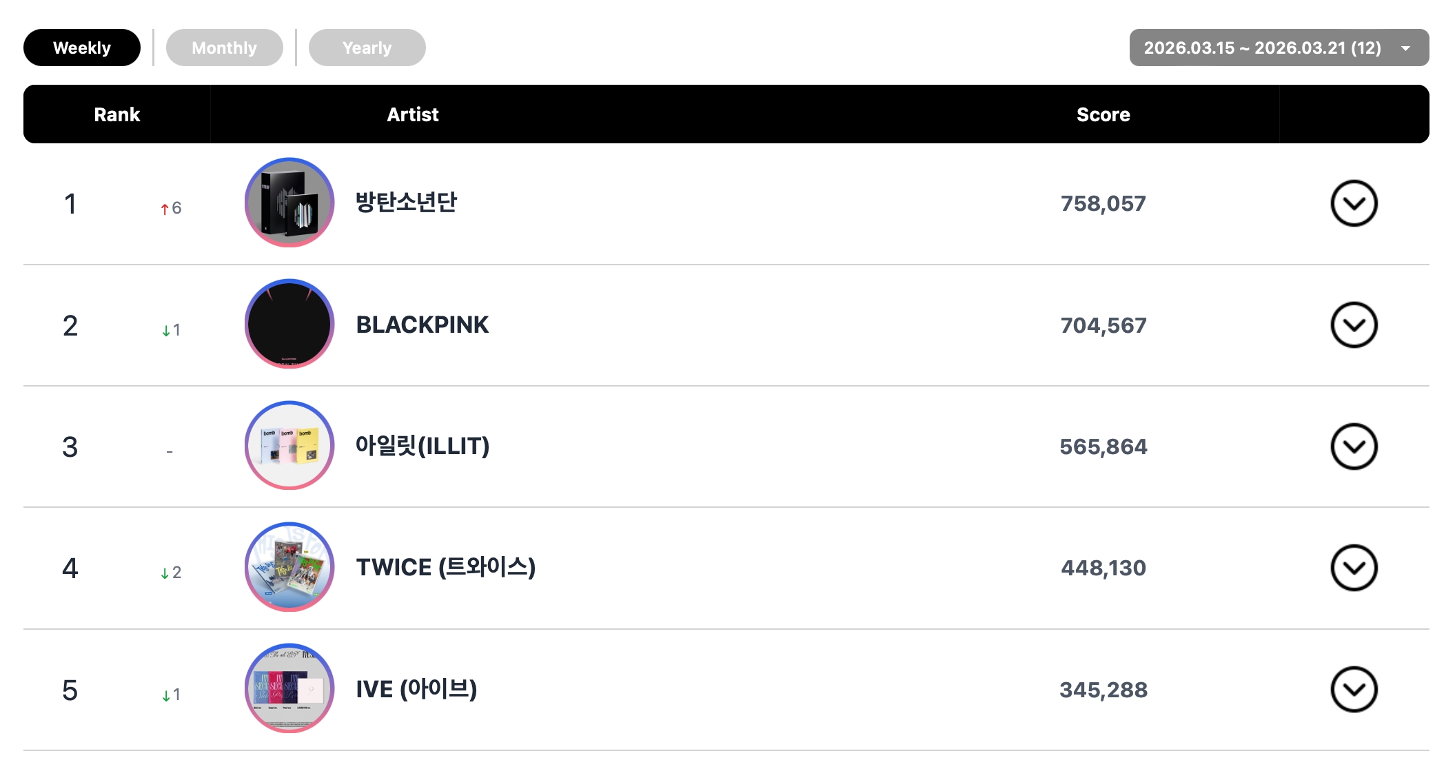 Circle Chart (formerly known as Gaon Chart) has revealed its chart rankings for the week of March 15 to 21!