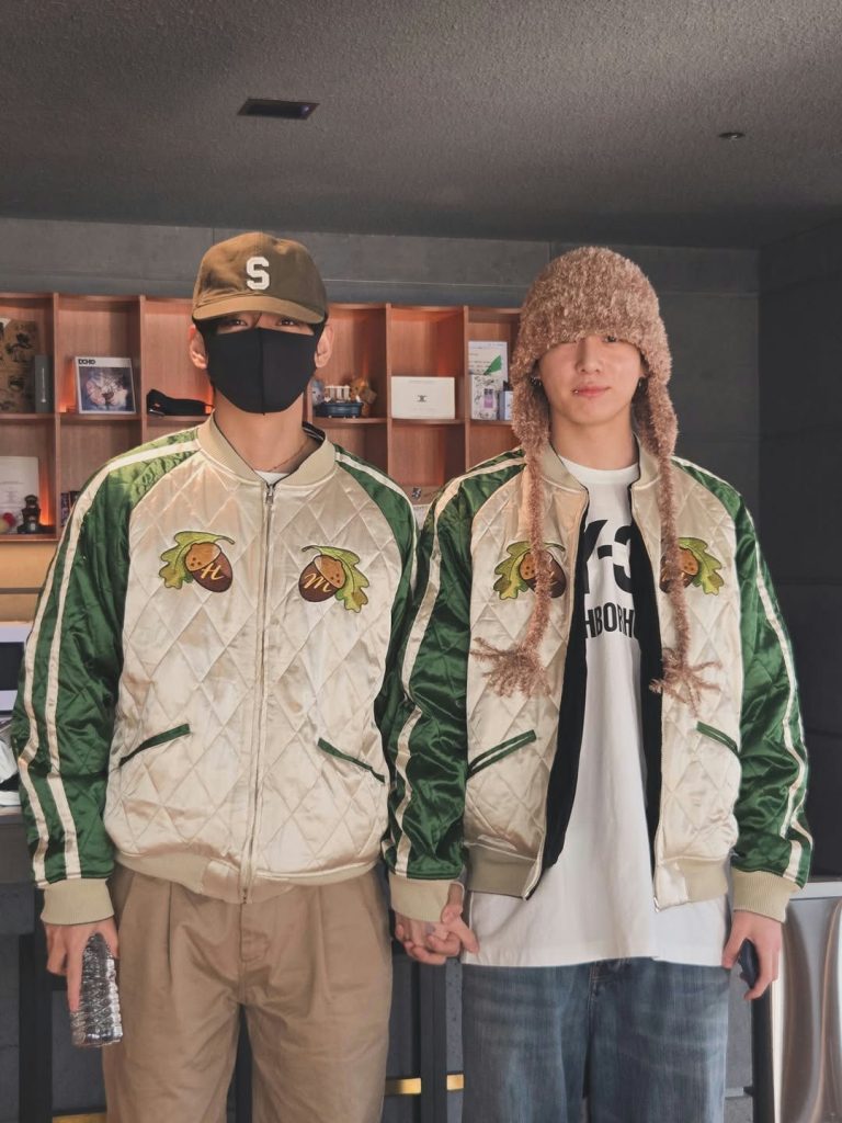 The snapshot featured Jungkook and V side by side, both wearing matching jackets from J-Hope’s recent clothing collaboration. Even more amusing, they were seen holding hands a detail that fans couldn’t overlook.