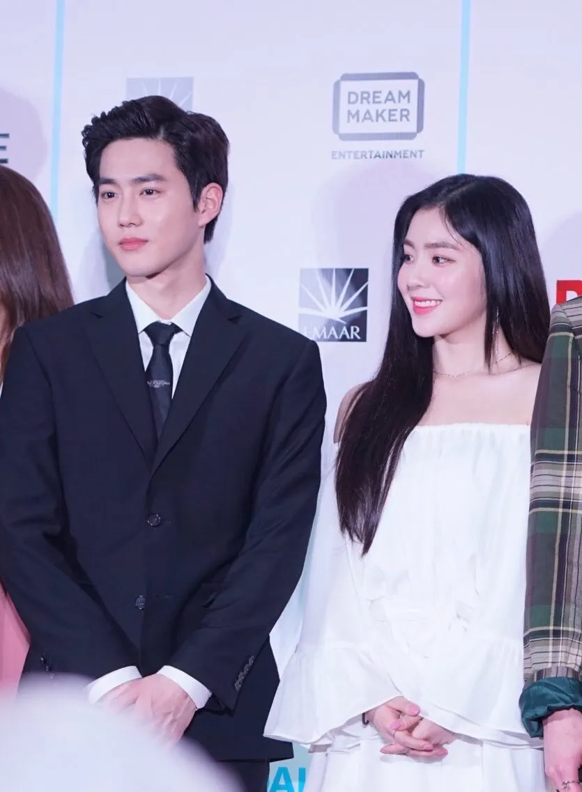 Such intimate gestures are typically associated with couples in a close relationship, prompting both media outlets and fans to question whether the two idols have been secretly dating. In another circulating video, Suho is seen enthusiastically waving at Irene to catch her attention, further intensifying the speculation. Their natural, comfortable chemistry left fans both stunned and thrilled, with many admitting they were “losing their minds” over the interaction.