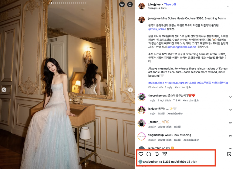 On February 7, influencer Lee Joo Young—known as a fourth-generation heir of Daelim Group—shared a series of photos and videos on her Instagram, captioned, “A collection that beautifully interprets Korea’s cultural heritage through the refined aesthetics of French couture.” The post featured Lee attending an overseas fashion show, exuding elegance and high-fashion flair.