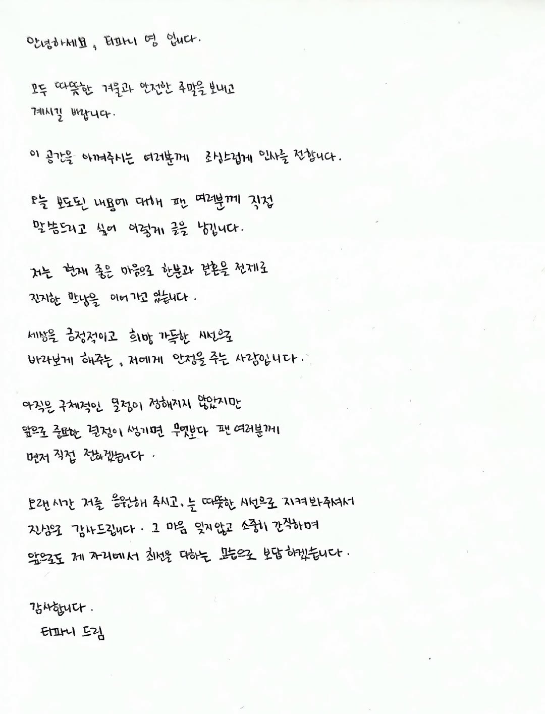 Although we don’t have a concrete schedule or plans yet, I have always had the strong desire to share this news with my fans first, above all else.I have met someone I love who, when I see her smiling face, quickly warms my weary heart, and when we’re together, I find myself wanting to become a better person.