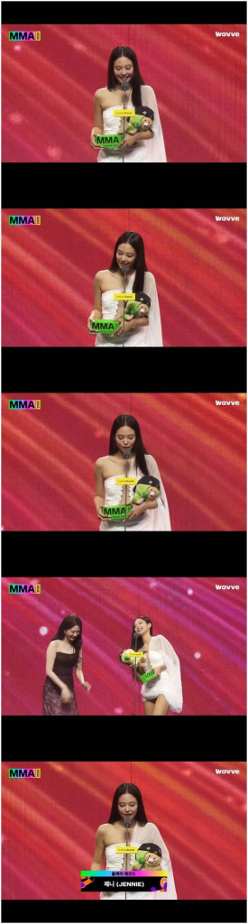 Jennie was the first to be announced among the four Daesang recipients of the night. She greeted fans with a humble, “Hello, this is Jennie. I just came off stage and I’m still a bit overwhelmed.”