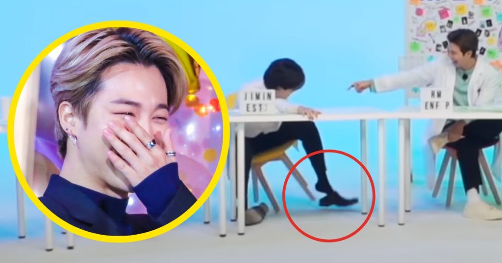Perdre une chaussure et casser accidentellement la chaise, seul Jimin pouvait réussir ce coup.