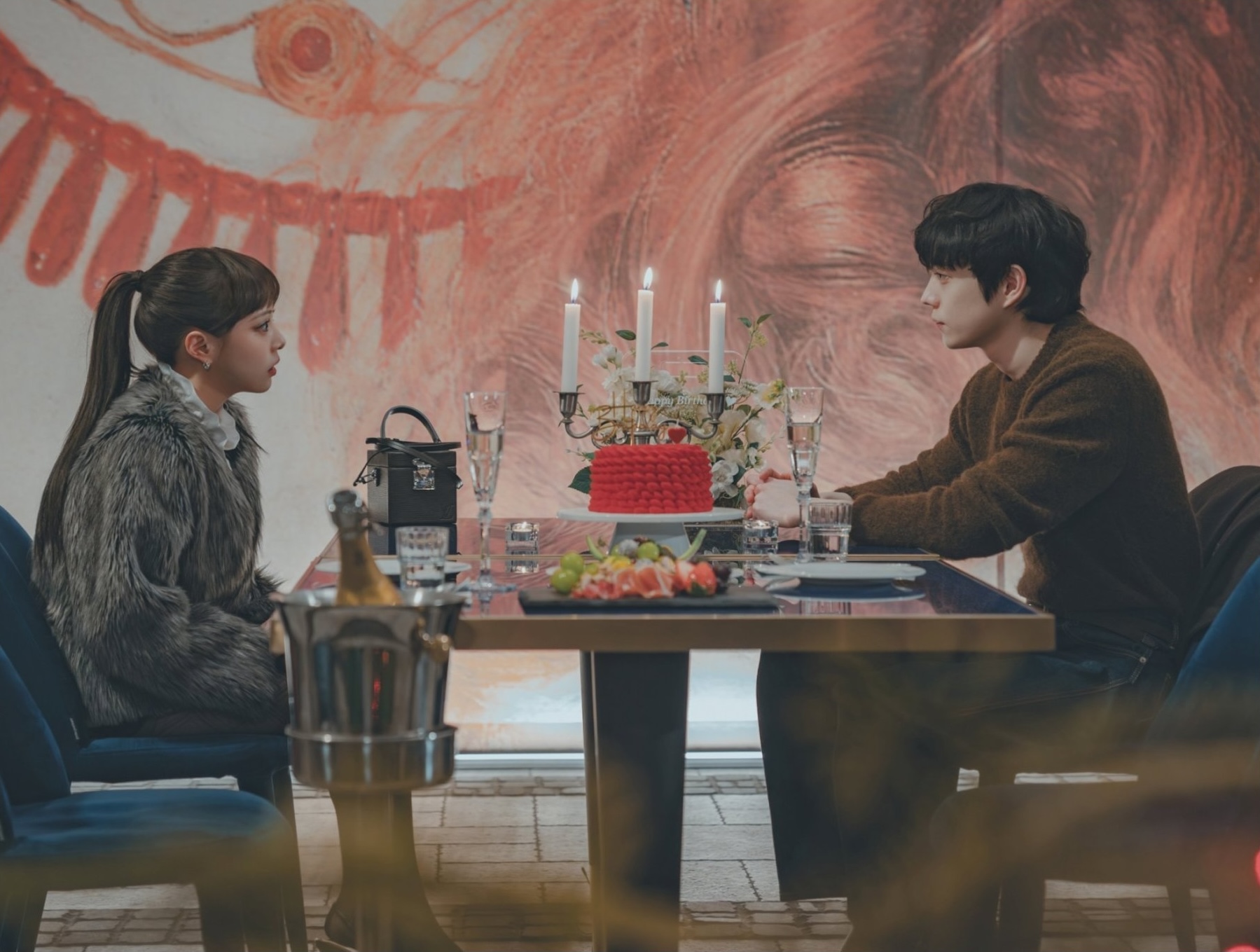 However, the atmosphere takes a sharp turn as Yoon Jun Seo (Kim Young Dae) and Lena (Lee Yul Eum) appear, breaking the couple’s happy moment. With Yoon Jun Seo knowing that Baek Ah Jin’s feelings are fake and Lena being Heo In Gang’s ex-girlfriend, the meeting between the four creates a great sense of tension.