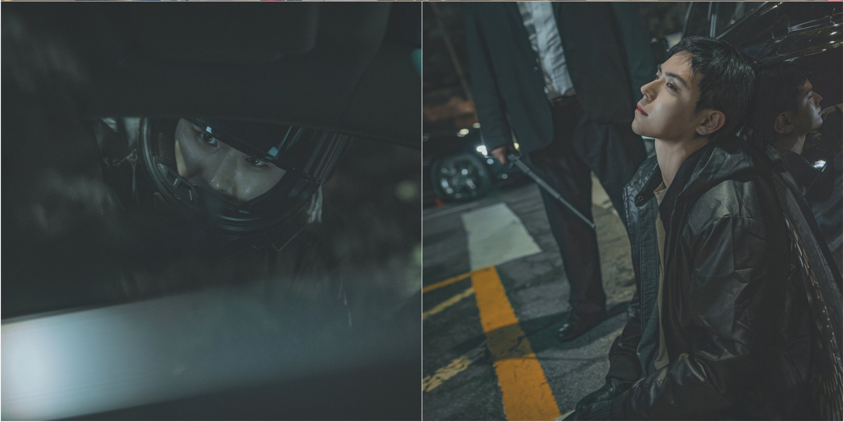 Furthermore, the stills also preview Kim Jae Oh (Kim Do Hoon) in peril, checking someone’s face through the car window. Another still shows him sitting on the road in the middle of the night with a mysterious man next to him, hinting at danger.