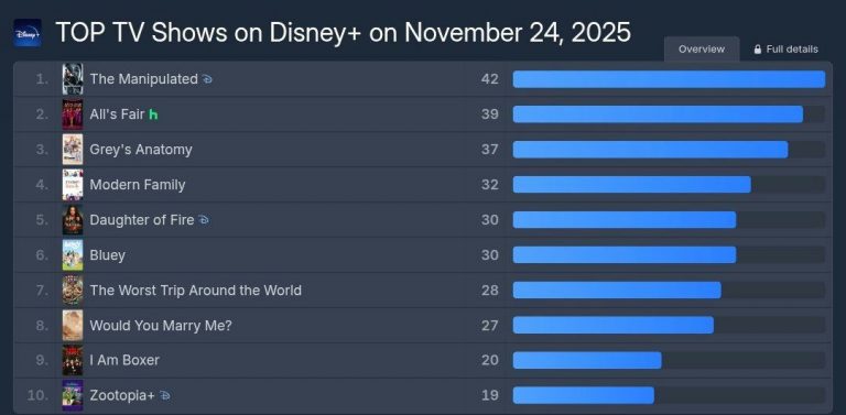 Starring Ji Chang Wook and D.O. (EXO), The Manipulated has skyrocketed to the top of Disney+’s global chart, according to FlixPatrol data from November 24. The drama has outperformed high-profile releases like All’s Fair, featuring Kim Kardashian, proving its broad international appeal and critical success across major markets.