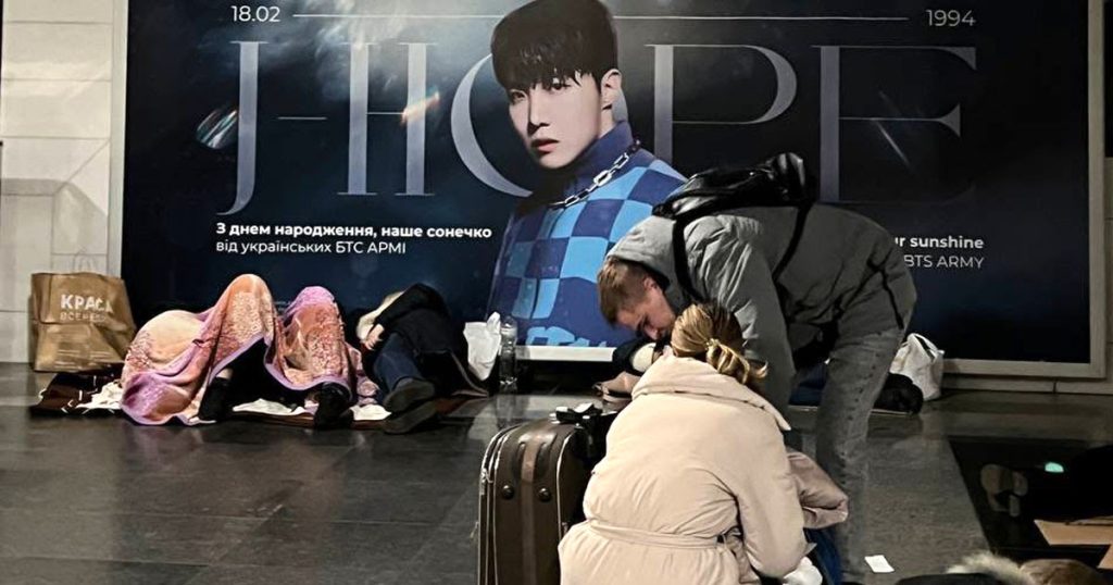 Notre projet pour J-Hope de UAverse Ukraine dans le métro de Kyiv 😔🙏🏻🇺🇦 c’est difficile de voir comment les gens sauvent maintenant leurs vies ici mais il y a quelques semaines nous avons fait des photos et ri là-bas. Nous pleurons et ne pouvons pas croire que quelque chose comme ça arrive en Ukraine. Cette guerre est un cauchemar. pic.twitter.com/fXVWwdKNqz