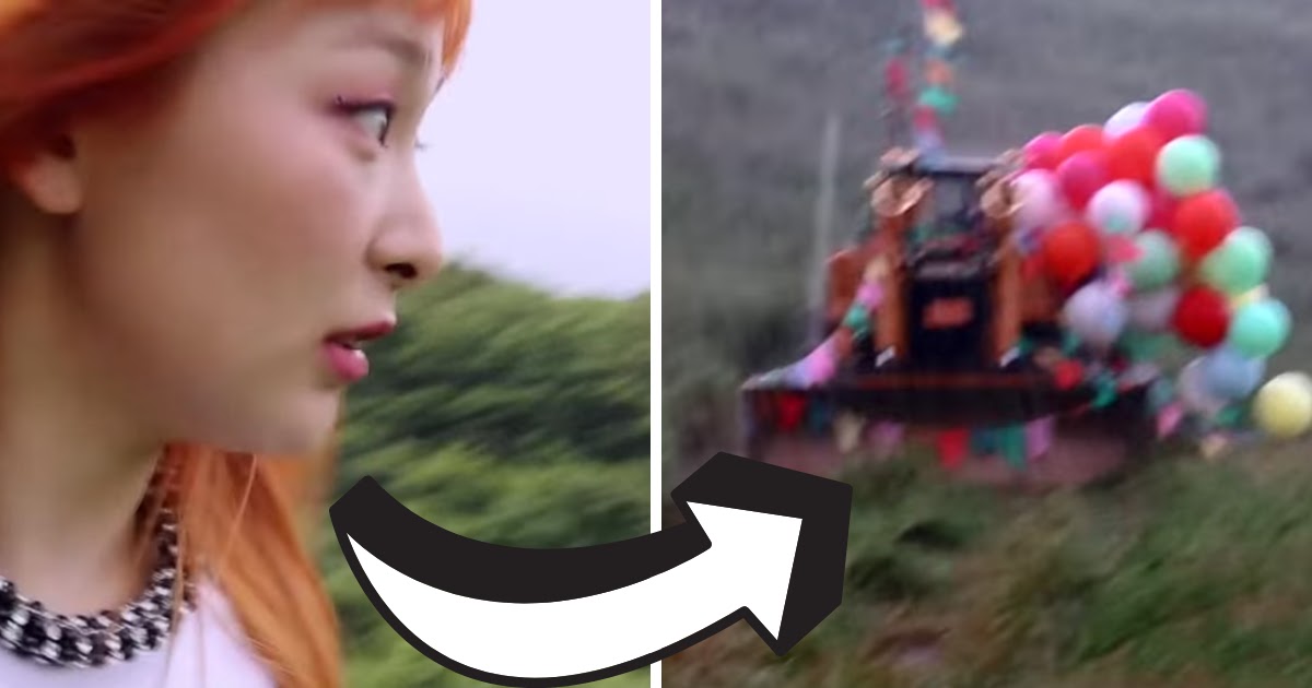 Seulgi a ensuite tourné sa caméra pour montrer le pauvre bulldozer sur lequel les filles étaient censées filmer, laissé seul dans le champ et complètement couvert de ballons alors que la pluie se déverse autour de lui. Elle a même encouragé le bulldozer à “s’accrocher.”
