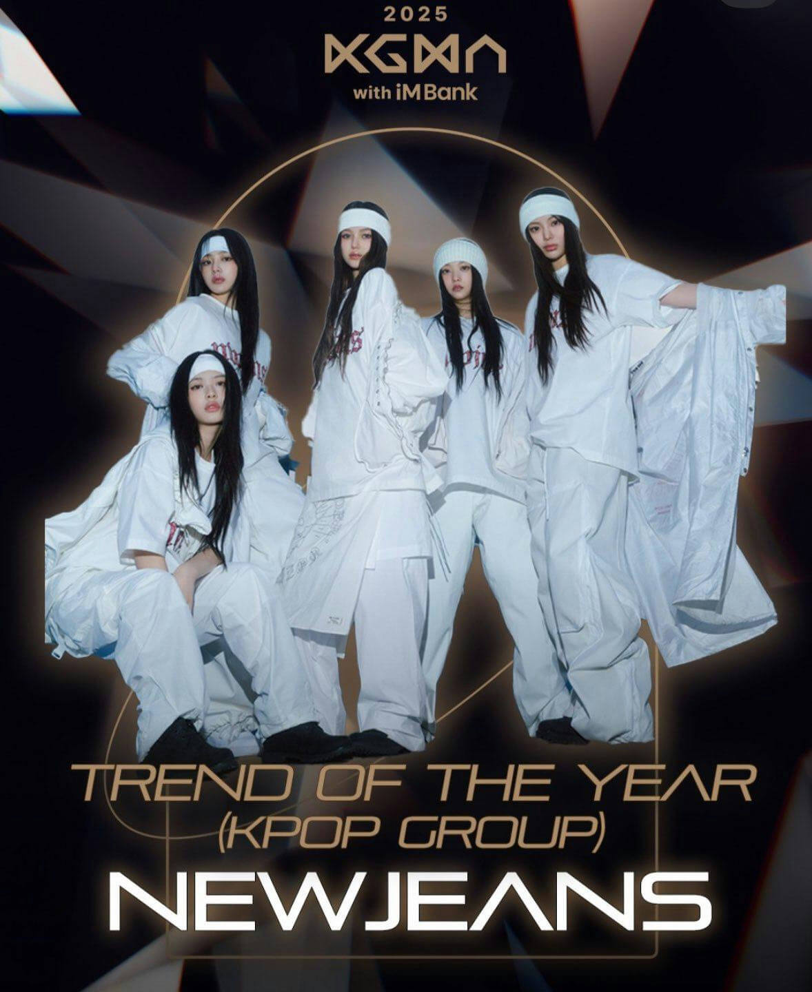 K-pop group NewJeans (Minji, Hanni, Danielle, Haerin, and Hyein) won the “Trend of the Year – K-pop Group” award at the 2025 Korea Grand Music Awards with iM Bank (2025 KGMA), held on November 14 at Inspire Arena in Incheon. This recognition, voted on by global fans, reflects the group’s unwavering popularity.