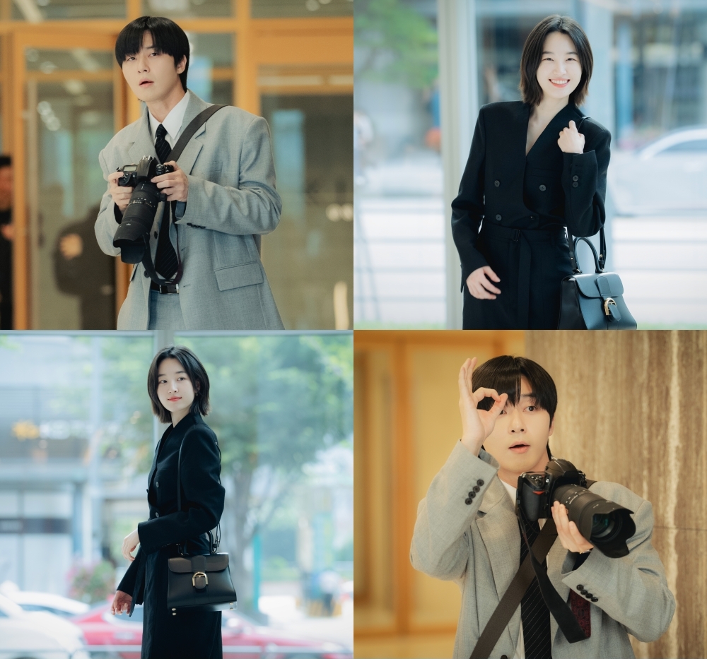 In newly released stills from the drama’s next episode, Gyeong Do continues to give Ji Woo his warm support—this time in the role of personal photographer. Although he was initially reluctant when Ji Woo asked him to take photos of her morning commute for a press release, Gyeong Do passionately gives the task his all as he stands in her company lobby with a camera in hand.
