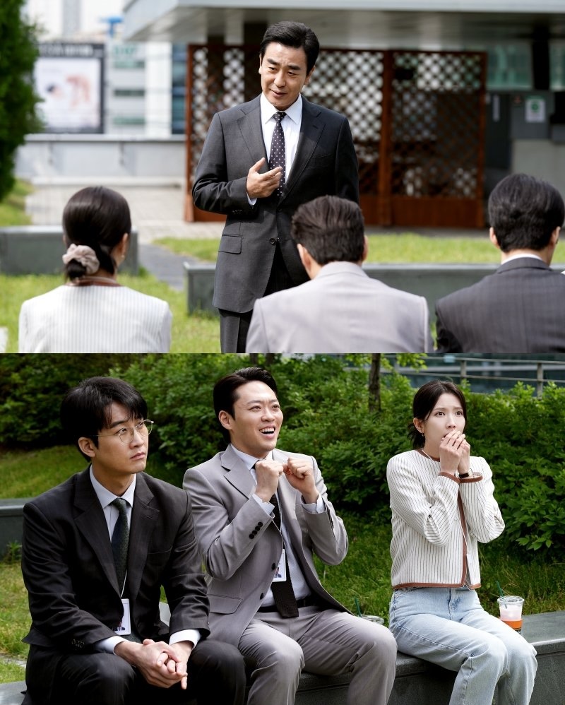 In the newly released stills, Kim Nak Soo’s team members appear moved by his speech. Jung Sung Gu (Jung Soon Won) heads out with Kim Nak Soo to meet customers and get contracts signed, impressing viewers with their teamwork. Viewers are curious to find out how their sales performance will be evaluated.