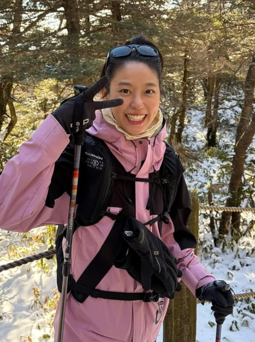 Her slightly flushed cheeks and relaxed expression added to her fresh and youthful charm, proving once again why she’s often hailed as one of Korea’s top natural beauties. Despite the physically demanding hike, her skin remained glowing, and her signature bright smile didn’t fade.