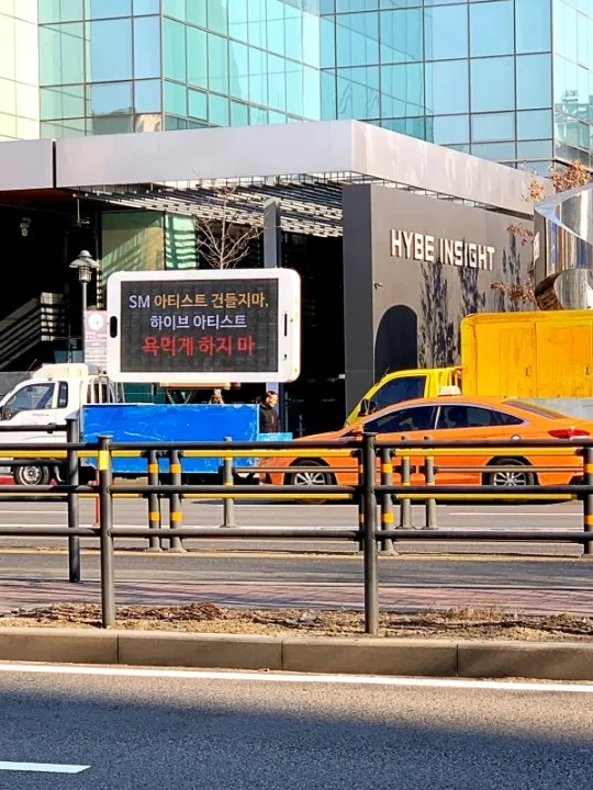 Some fans of SM held a truck protest at HYBE’s office building in light of the dispute of SM’s management rights.