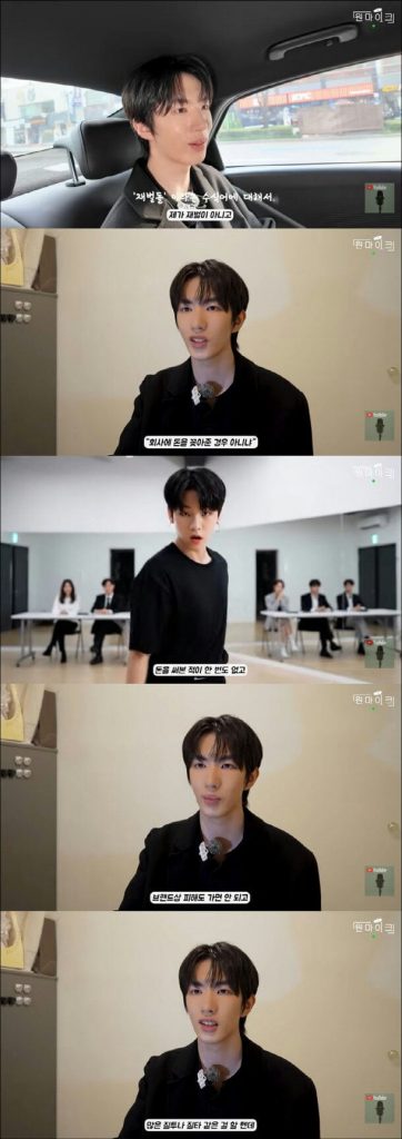 “People commented that if I’m a chaebol idol, I must’ve paid my way into the company — but that’s not true at all,” he said. “I applied, met with agencies, and auditioned myself. I’ve never spent money on this industry, except for academy tuition. I went to at least 200 auditions on my own.”