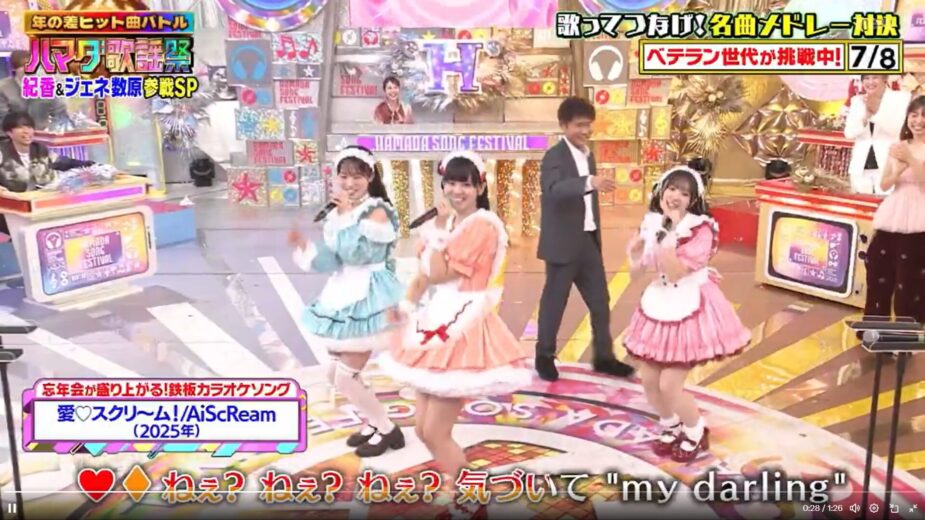 Recently, members of AiScReam, a girl group consisting of three Japanese voice actresses, appeared as guests on the show and performed some songs live as part of a two-hour special winter episode. During a particular segment, where AiScrReam member Ai Furihata was singing “Kimi tte” by Kana Nishino with her groupmate, the show’s host, Masatoshi Hamada, was seen approaching her from behind.